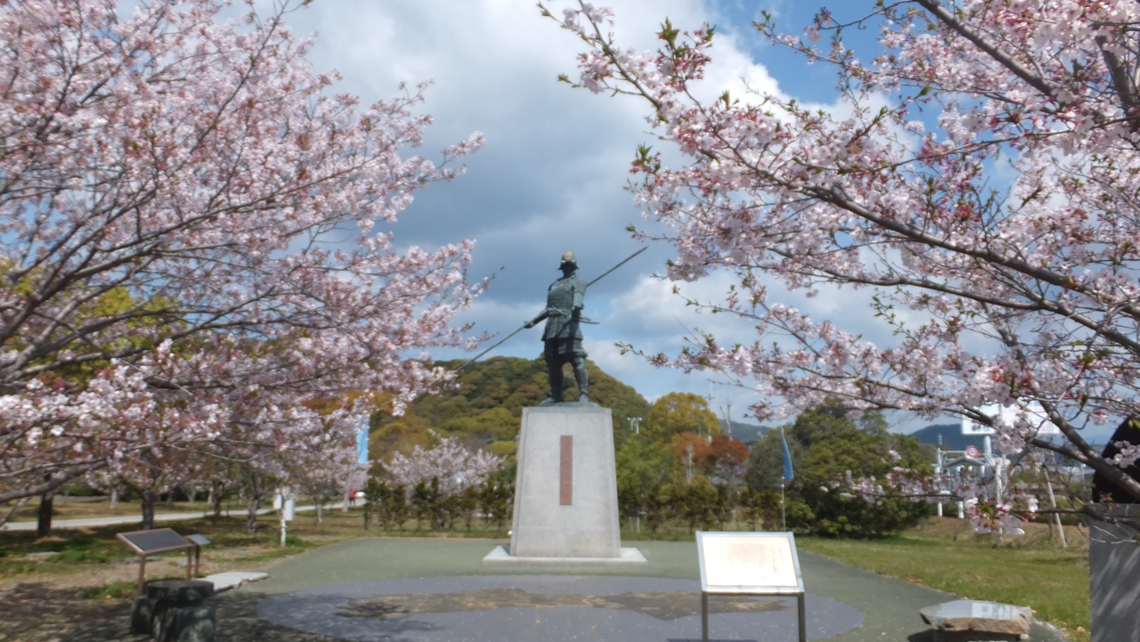 その際、若宮八幡宮の社頭に陣を張り、戦勝を祈願したことから、この地に初陣の雄姿を再現したものです。