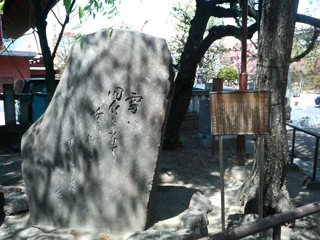 句碑には「雷は 田町をよけて 鳴りわたる」と詠まれています。