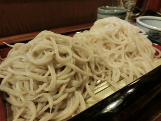 そば豆腐はしっとりした触感の中にほのかにそばの香り。お好みで醤油と山葵で頂きます。合い盛りは「外二」と「せいろ」の2種類で一度に二度美味しい♪いずれも細切りでコシのある触感です。お汁は微かに甘みを感じさせましたが、私の好きな濃口タイプ。