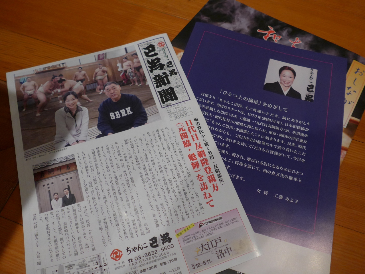昭和51年に両国友綱部屋跡地にちゃんこ「巴潟」としてオープン。