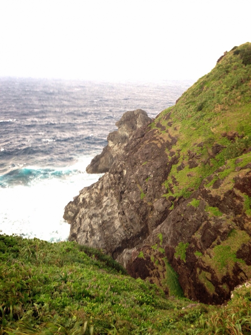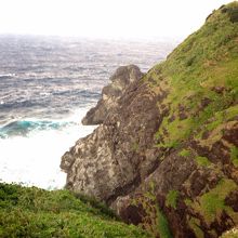 エメラルドグリーンの海と言うよりは、断崖絶壁に打ちつける荒波のイメージでしょうか、。