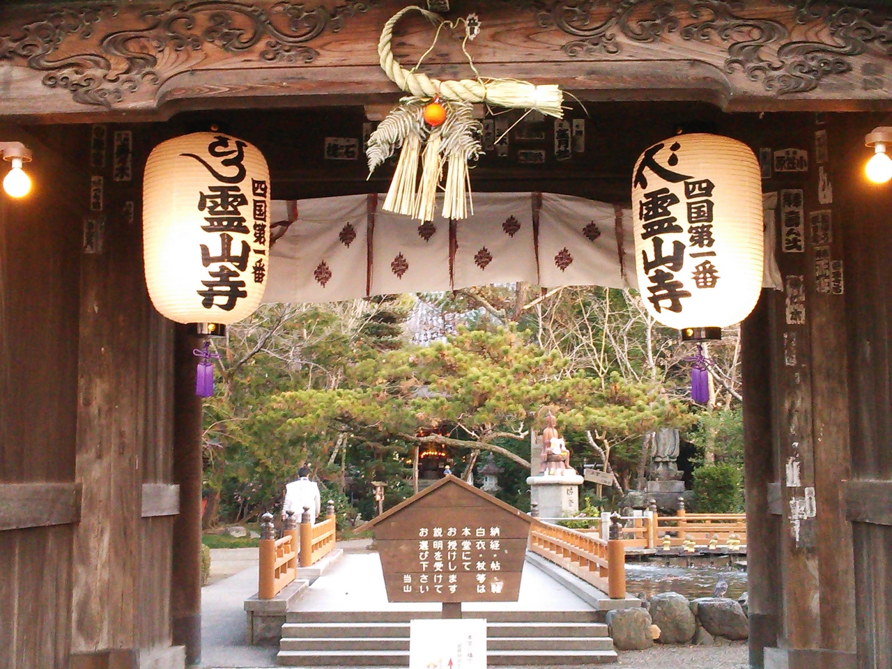 お遍路旅の最初に訪れたのですが、門の両側にも灯りがともされて霊験あらたかな気持ちになりました。