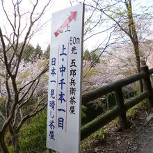 五郎兵衛茶屋と地図にのっていて、それを目印にすすむとほんとうに日本一見晴というようにすばらしい景色でした。ただこのへん、ちょっと足場が悪いところがあったりするので、歩きにくい場所が多々あります。周囲を中千本の桜に囲まれ本当にすばらしい景色でした。