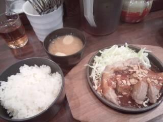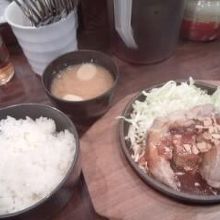 とんてきを注文しましたが、焼いてるだけでなく、焼く前に蒸しているようです。それを焼いているので、焼いたカリッと感とジューシーさがなく、私の求めている味ではありませんでした。ソースは、しょうが、トンてきソース、和風、と選ぶことができます。ご飯みそしるは2百円で追加できます。ご飯の大盛は無料です。