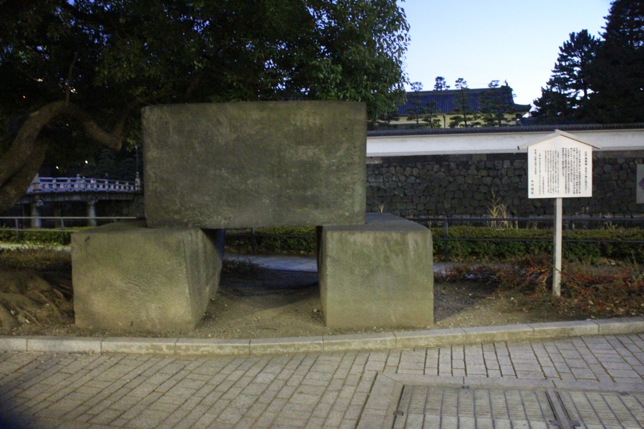 東京メトロ東西線竹橋駅を出て平川橋の方へ歩いて行くと大きな石が三つ重なって置いてあります。
