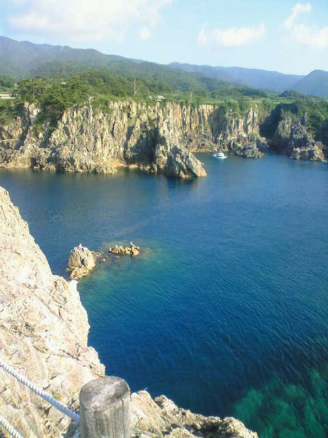 佐渡の西海岸にある湾で、荒々しい断崖絶壁が遠くまで延びています。