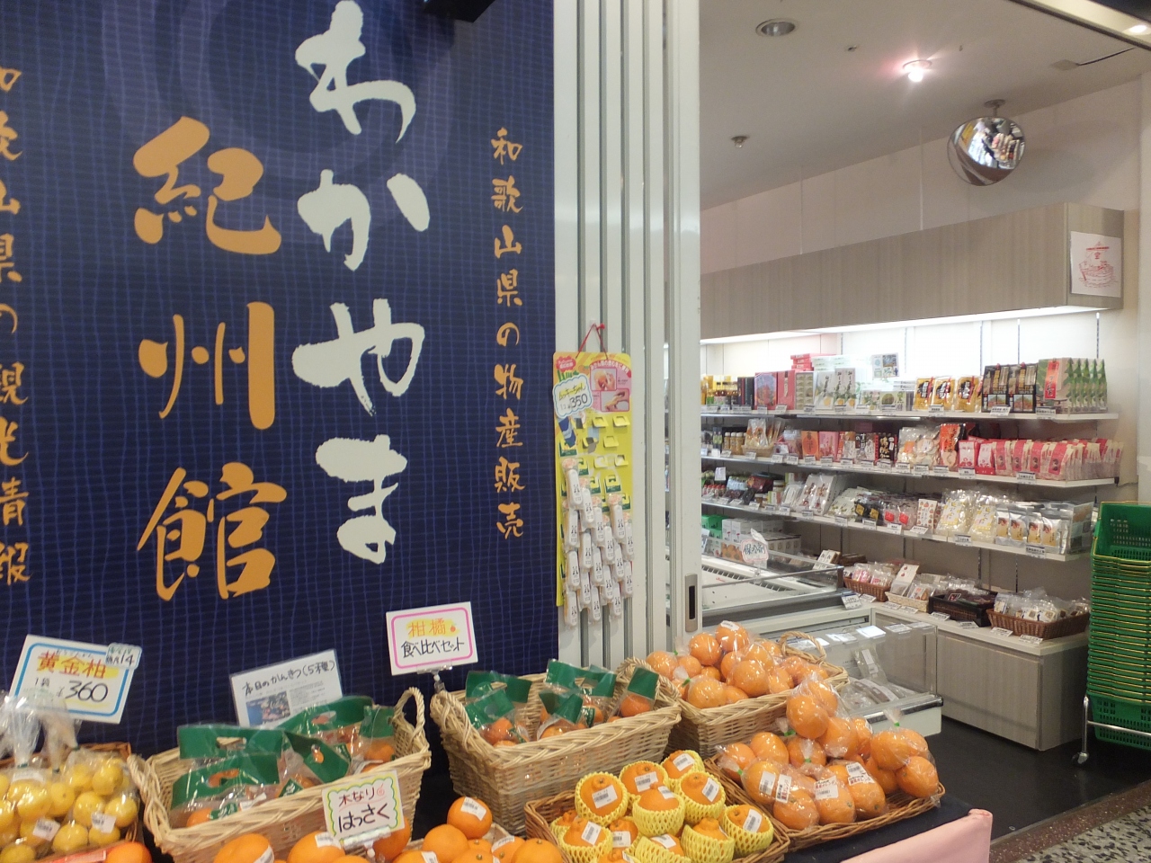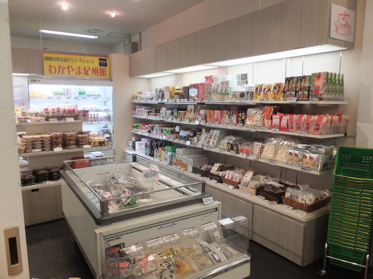 和歌山の特産品がいろいろ揃っています。たとえば、梅酒ひとつにしても紀州梅酒、蜂蜜梅酒、にごり梅酒、熊野梅酒などいろいろ売られています。店の隣には和歌山の観光パンフレットをとりそ揃ろえた情報スペースもあります。