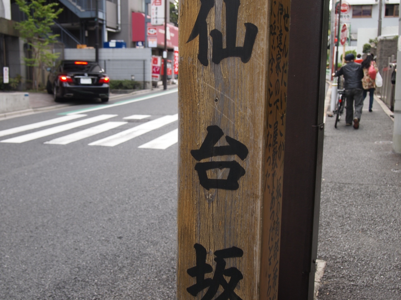 名前の由来はこの坂の南側に松平陸奥守(「仙台」藩伊達家)の下屋敷があったことにちなむようです。今は坂の途中に韓国大使館があり、時節柄か警察車両が多く停まっていました。
