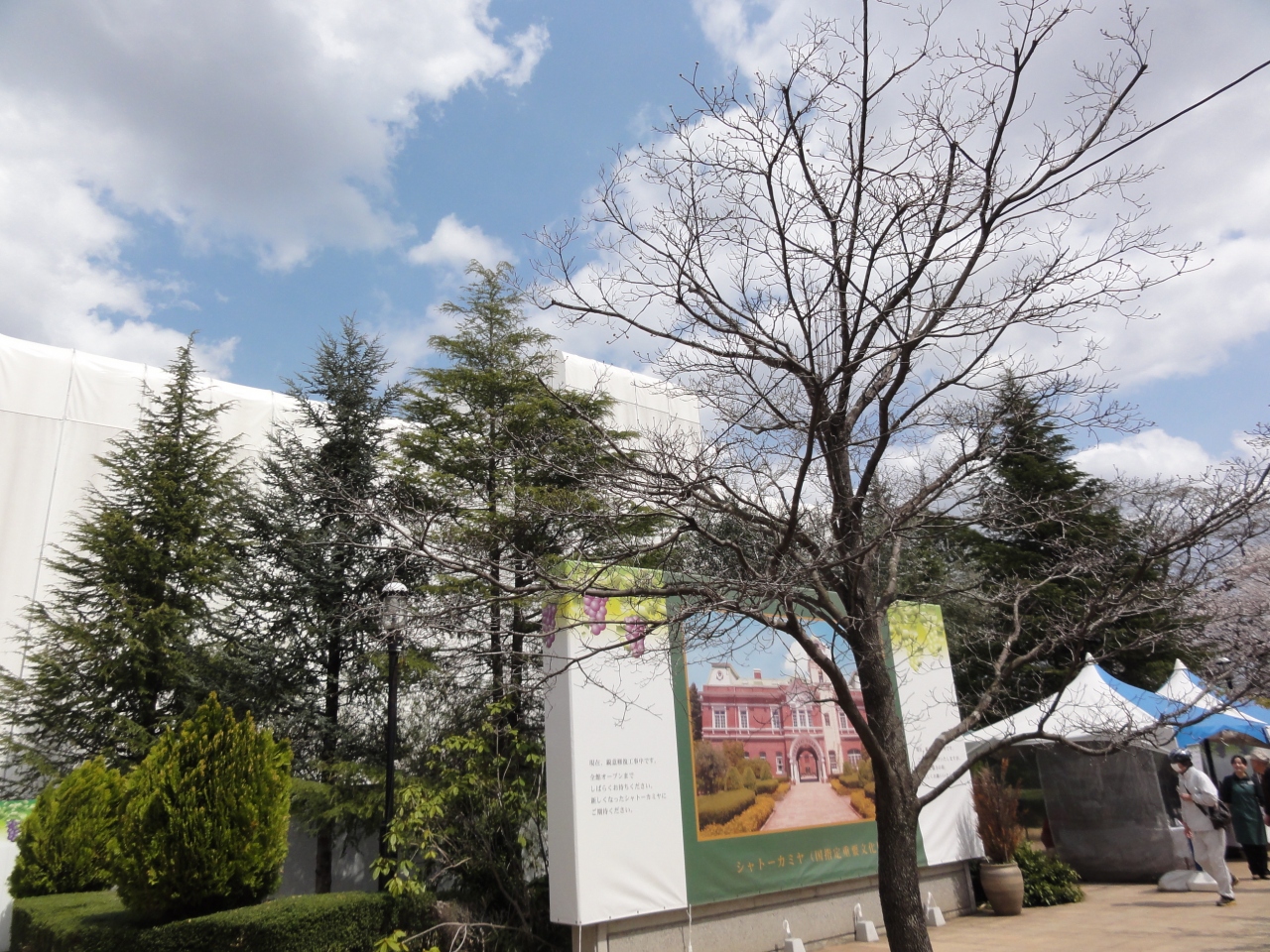 今年も桜を見にシャトーに行きました。シャトーは修復中でしたが、以前の和食レストランが「オエノンミュージアム」になり見学出来ました。「オエノン」って何?と思いましたが合同酒精を中心にした酒造会社グループで、北海道や秋田、灘の銘酒と知られる会社の歴史や商品、酒器、ワインなど展示してました。北の誉や富久娘、ビックマン等、実家が酒屋だったせいか懐かしいポスターや酒類も見られ、懐かしかったです。入館は無料、大きな建物ではありませんが、一休みできるところもありお勧めです。