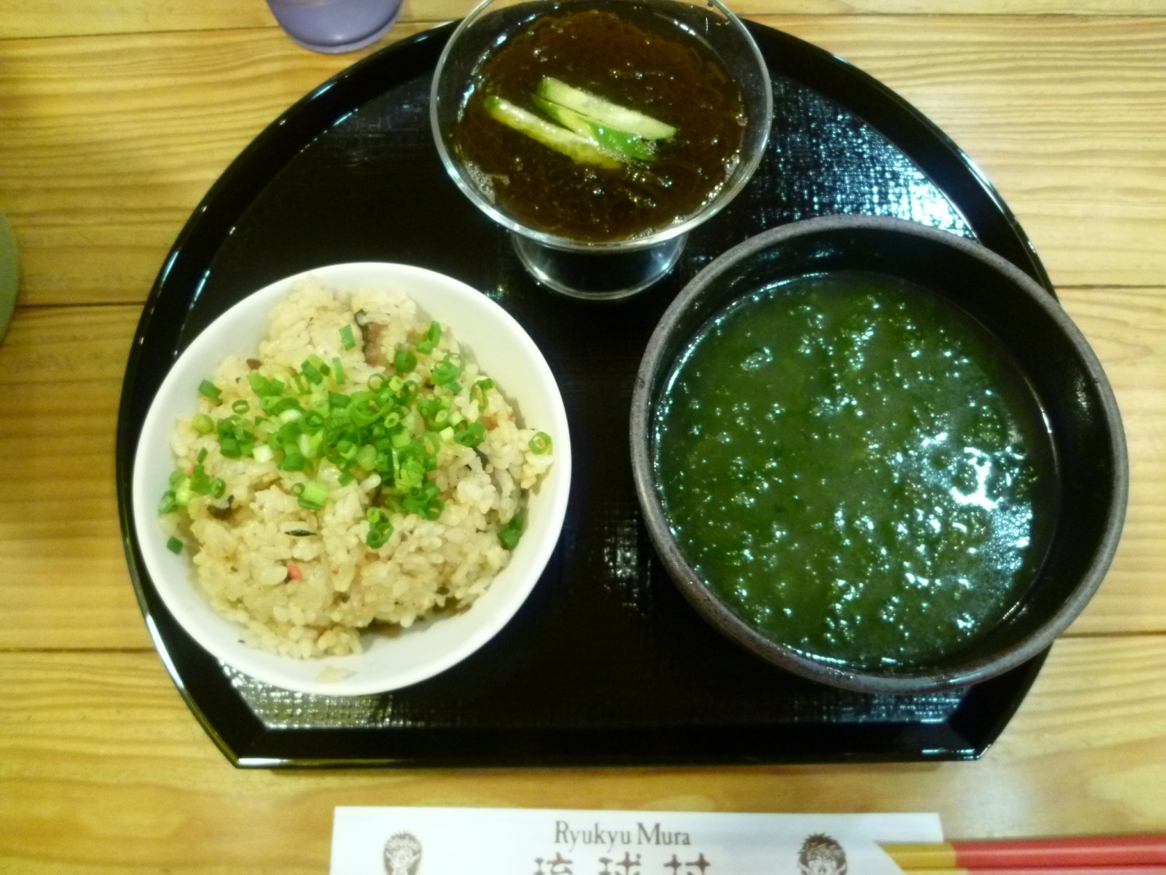 かやくごはん、あおさ汁、もずく酢をいただきました。