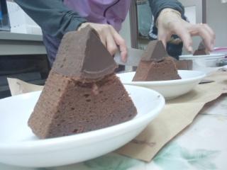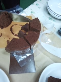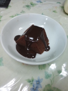 バレンタインデー期間限定のショコラバームクーヘンを購入しました。バームクーヘンの真ん中の穴にチョコレートが詰まっています。切り分けて電子レンジにかけるとチョコレートが溶けていい感じになります。結構甘目です。