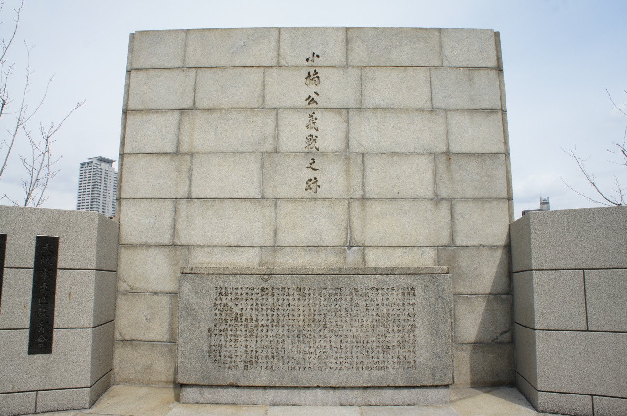 小楠公義戦之跡は、八軒家船着場から一段高い場所であるキャッスルホテル前。けっこう大きな石碑です。