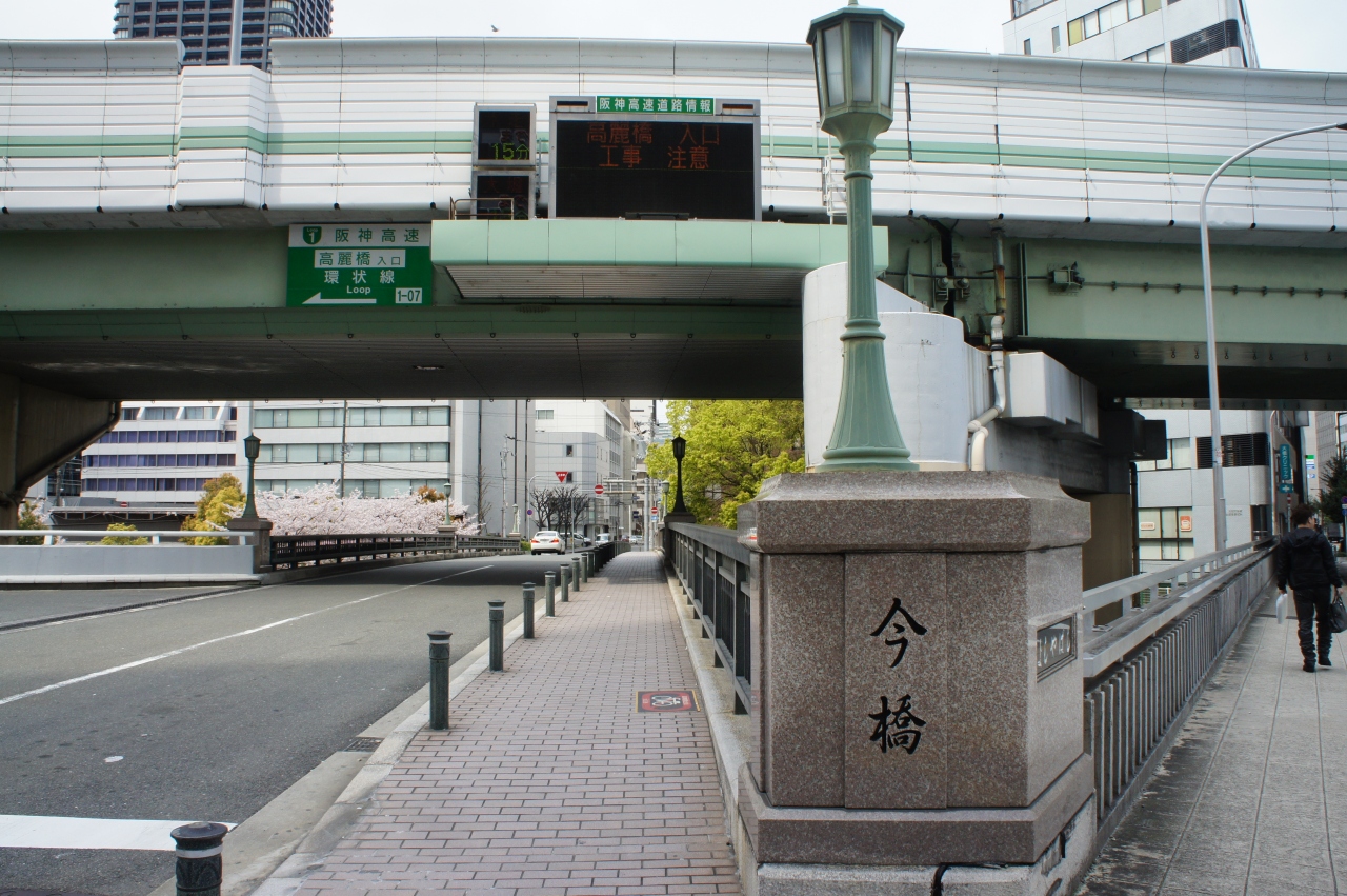 今橋は東横堀川に架かる橋で、変わっているのは、葭屋橋と東詰でV字型に分かれていること。入り組んだ水路のような川が流れる大阪ならではかもしれません。