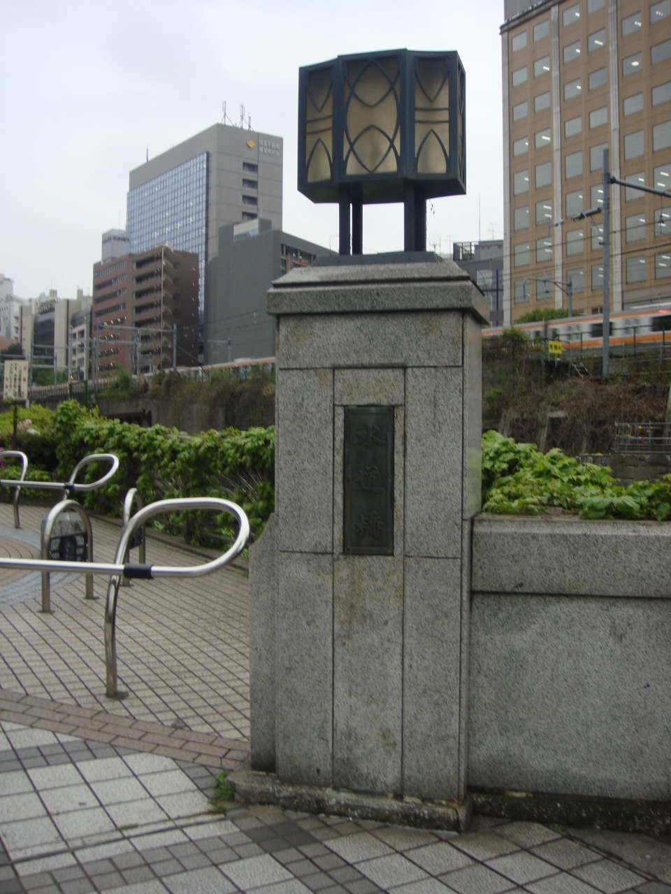 水道橋はJR水道橋駅前にある橋です。橋の下は神田川が流れていますが、このあたりが川面から橋までの高さが一番高いかもしれません。東京ドームへ行く時にはいつもこの橋を渡りますが、ティシュやビラ配りの方が大勢います。
