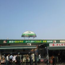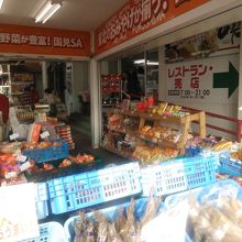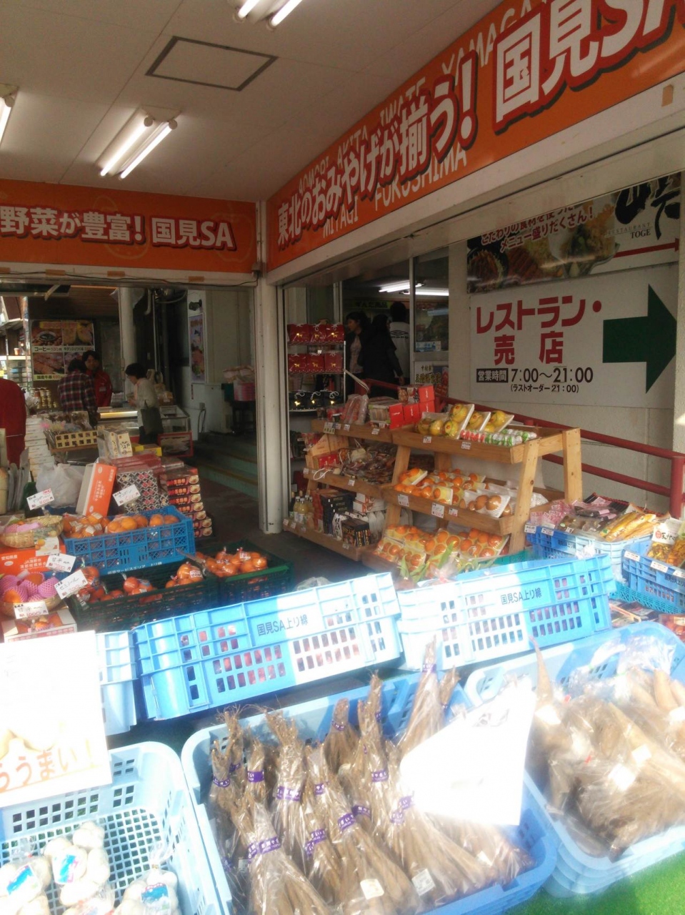 国見サービスエリアは、正面の突き当たりにレストランの入っている建物と離れた手前にある小さな建物にある売店があります。