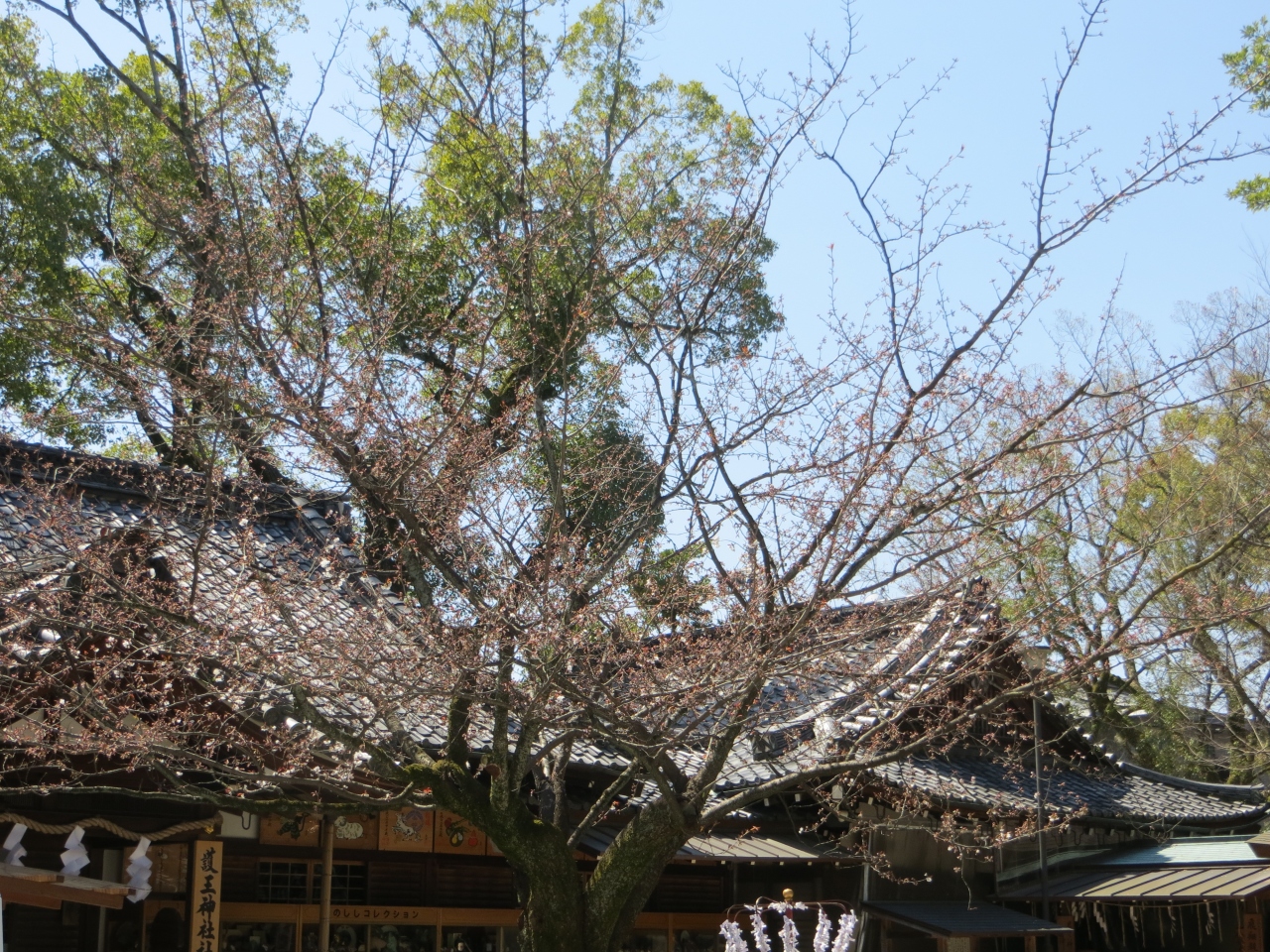 京都府庁でしだれ桜を堪能した後、近くの護王神社に桜を期待して行ってみました。徒歩5分程度です。残念なことに境内にはソメイヨシノが1本きり。京都の桜の開花宣言から数日だったのでほとんど咲いていませんでした。残念。