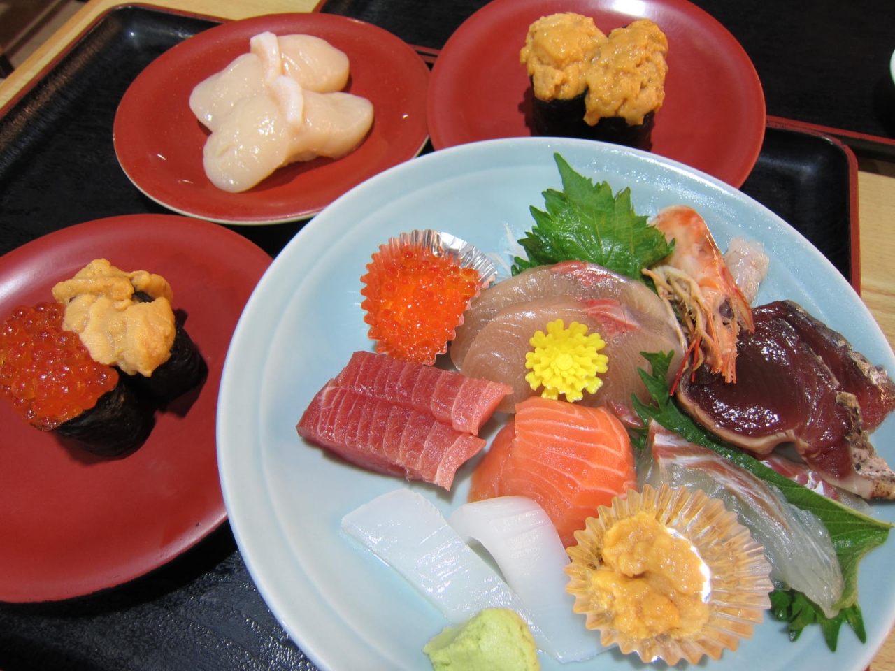 い市場の方にも持ち帰りできるお寿司などが売ってたので、それをフードコートで食べてもいいと思います。