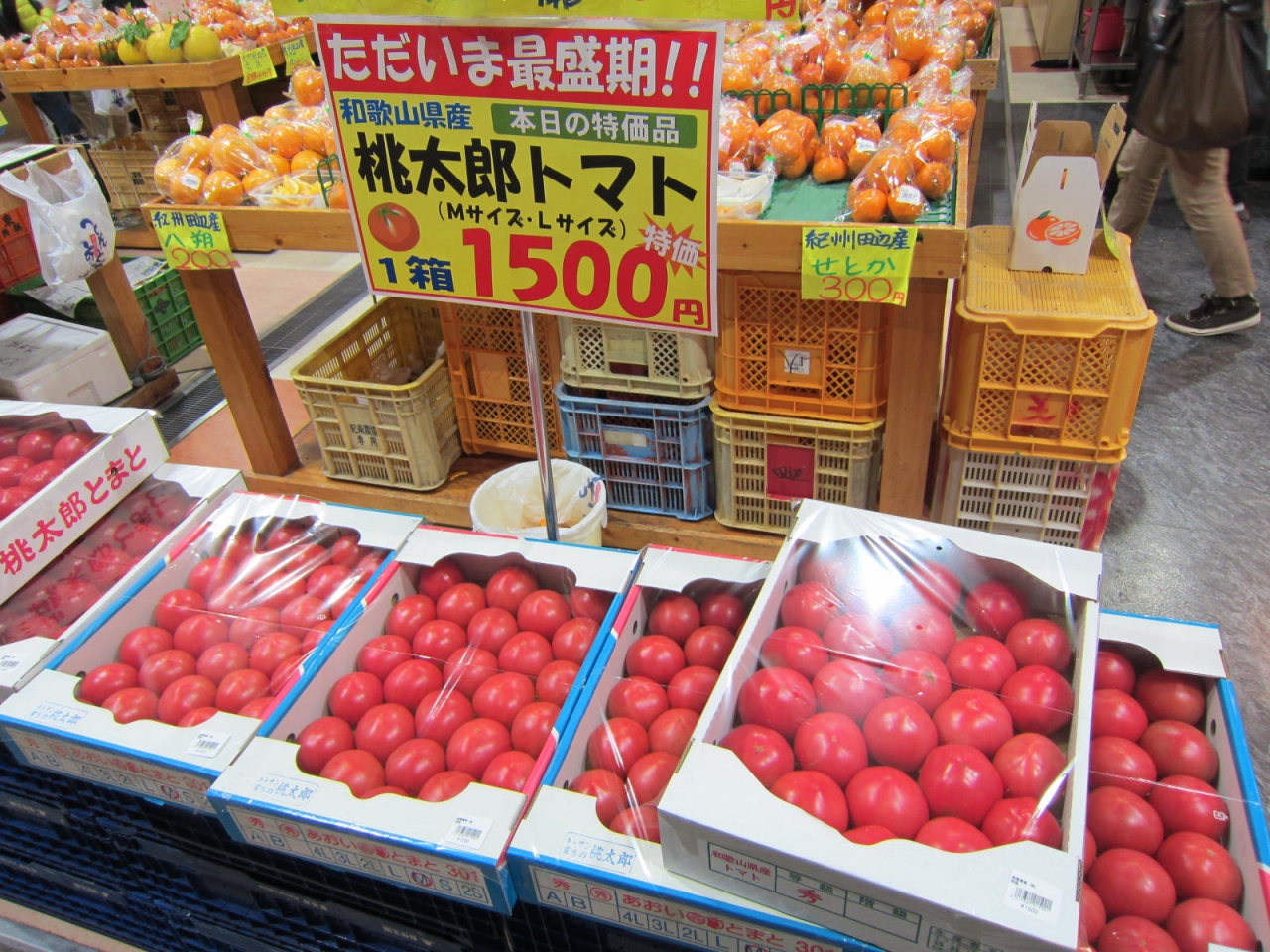 大きな市場で、海鮮の買い物や、和歌山のミカンなどの特産物が売ってる市場とご飯が食べられるフードコートがありました。