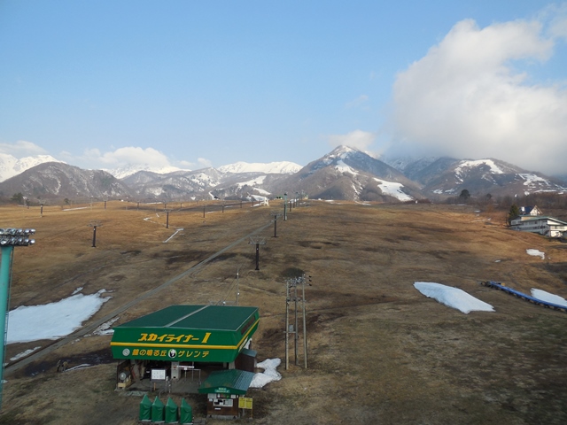 4月になってから行ったので、一番下の鐘の鳴る丘ゲレンデに雪はなく、芝生からふきのとうが芽を出していました。上の栂の森ゲレンデはまだ滑走可能でした。広々とした眺望がひらけ、美しい景色が堪能できるスキー場でした。
