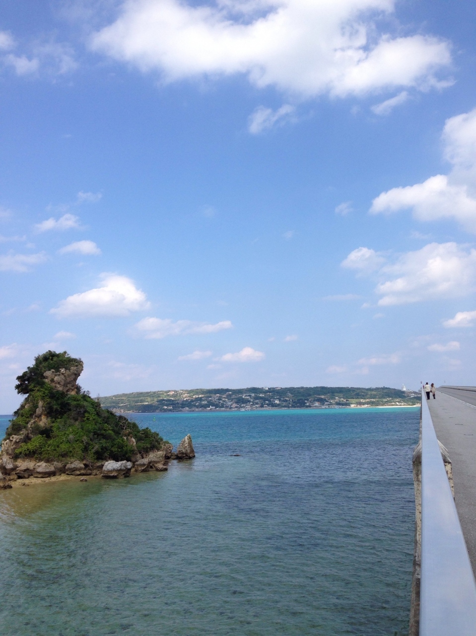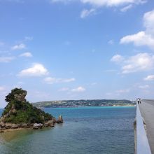 橋の手前に駐車場があり、橋と島、エメラルドグリーンの海を眺望出来ます。