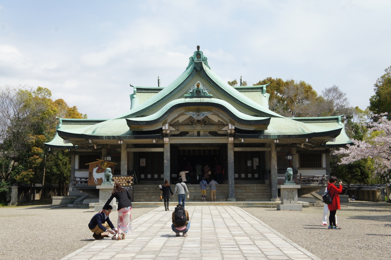 豊國神社は、桜門を出たところ。京都市の豊国神社の別社として創建されたもので、当初は中之島に鎮座していたようです。秀吉のほか豊臣秀頼、豊臣秀長も祭神。この日は、結婚式があったみたいで、親族の記念写真とかを撮っている人がたくさんいました。