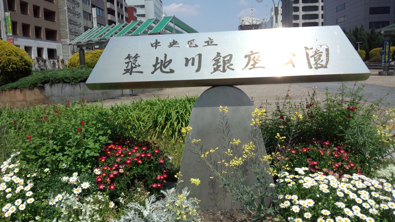 晴海通り、銀座と築地の境目にある首都高の上、晴海通りの左右が銀座公園。晴れた日にチョット休憩すれば、花や緑が目に優しい。排ガスは気にならないが、スモーキングの場所が少ない中央区銀座のスモーカーズパラダイスで、ノンスモーカーには苦痛を感じる。
