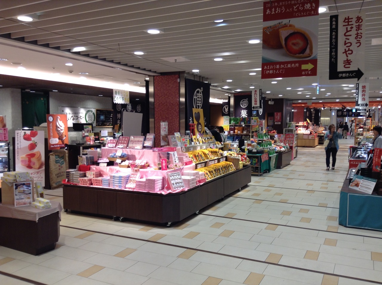 博多小径は、博多駅の地下にあるお土産ものを中心とした売店の集まった通路です。博多口と筑紫口をつなぐ位置にあります。
