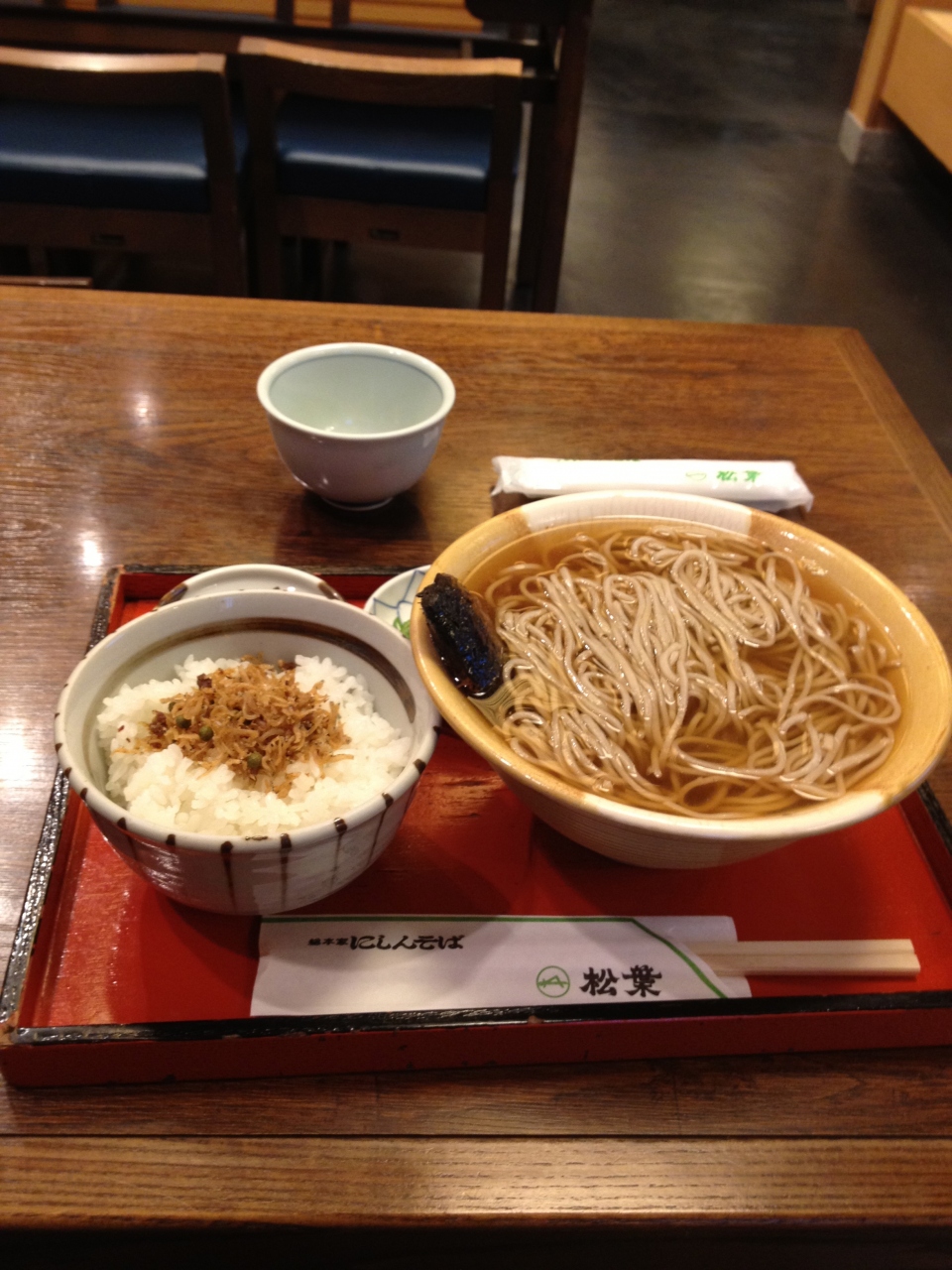 昔 学生の頃は、にしんそばは京都名物だと思ってよく食べていましたが,いつの頃から何となく地味な印象を受けるようになって敢えて食べることはありませんでした。他の店が閉まってしまう時間になったのでふと松葉に入ってみることにした。久しぶりに食べたニシンそばはだしのよく効いた本当においしいものでした。伝統のすごさを改めて感じました。