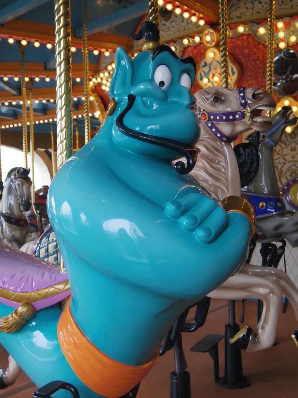 雨の日で、マジックランプシアターなど人が多すぎてとても入れなさそうなとき、ここは空いていたので子供と一緒に並びました。海外も含め、旅行先で色々なメリーゴーラウンドを見てきましたが、このカルーセルはほんとに綺麗! 色艶もいいし、写真撮影にぴったりだと思います。