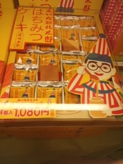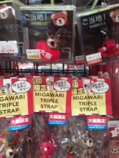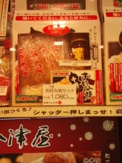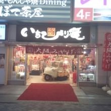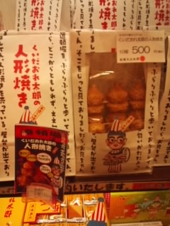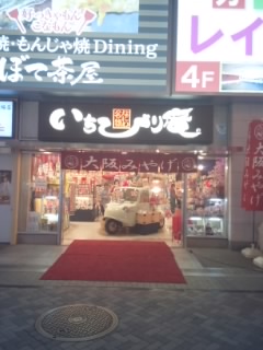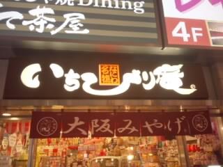 大阪土産のお店です。夜おそい時間に行きましたが、店内は観光客で結構繁盛していました。周りにも大阪土産のお店は多数あり、どこも似たような商品をおいていますが、こちらはくいだおれ太郎の商品がたくさんあります。