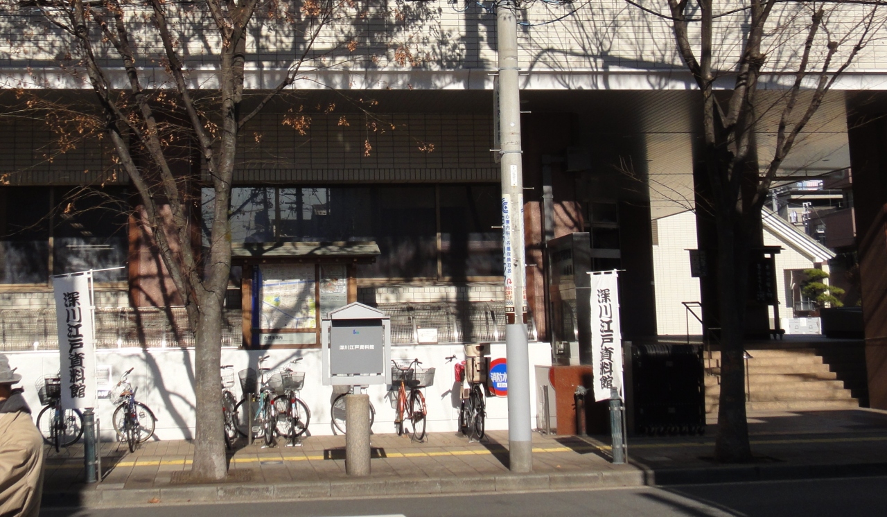 門前仲町駅を下車、清澄通りを北に少し歩きます(1kmほど)。深川江戸資料館と書かれた常夜灯のある通りを入り、しばらく行くとあります。この通りには、土産物店や深川飯の飲食店がありました。