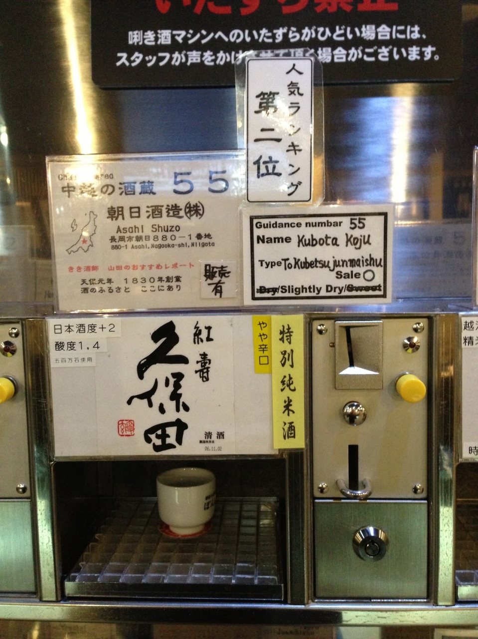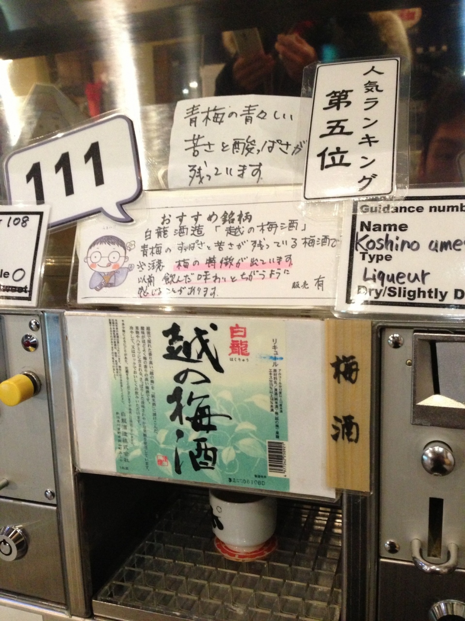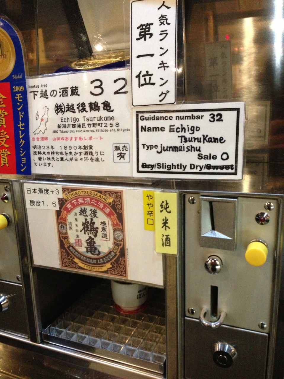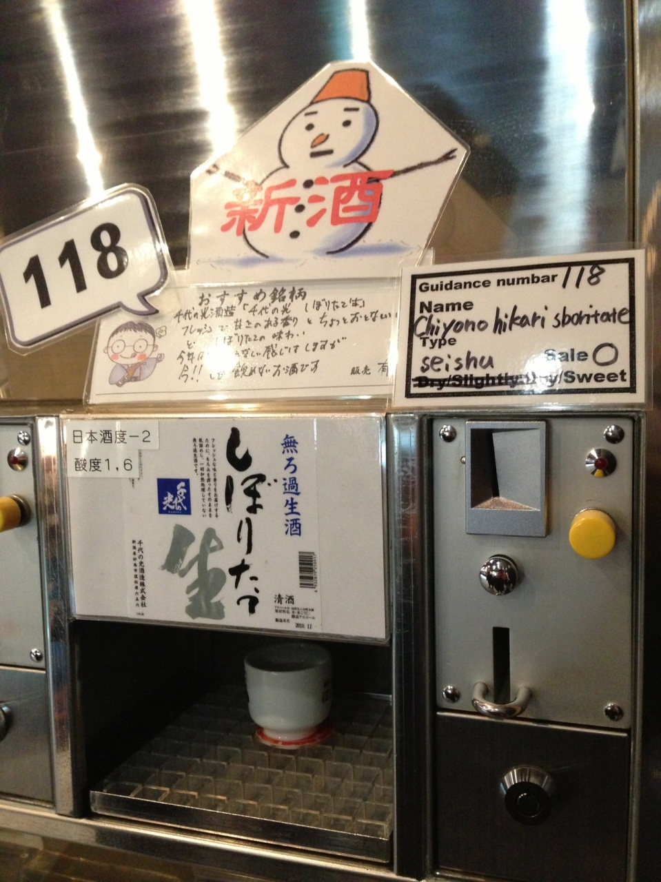 かなりの数のお酒があり、おちょこをセットしコインを入れてスイッチオン!