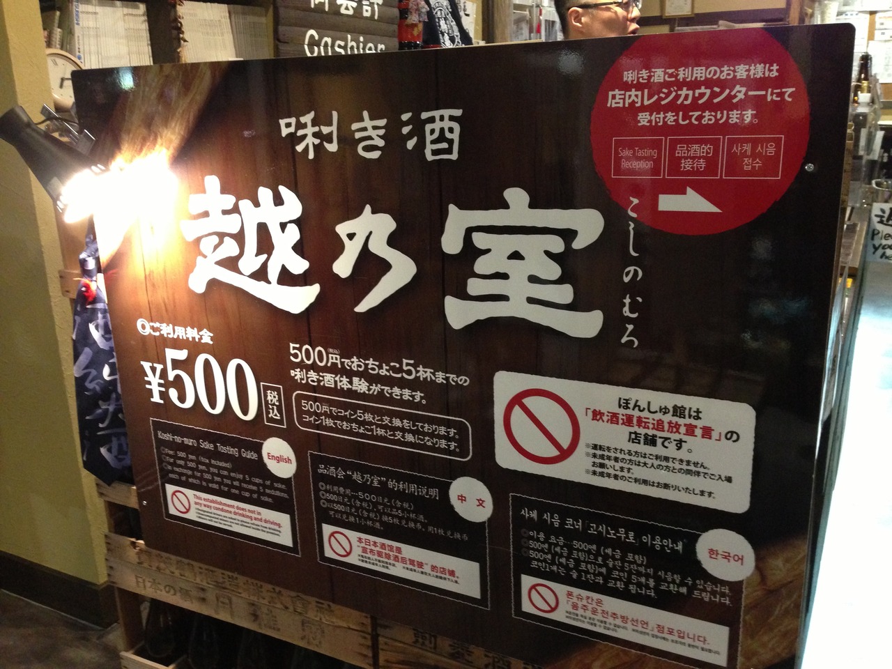 500円支払うと、おちょことコイン5枚が渡されます。