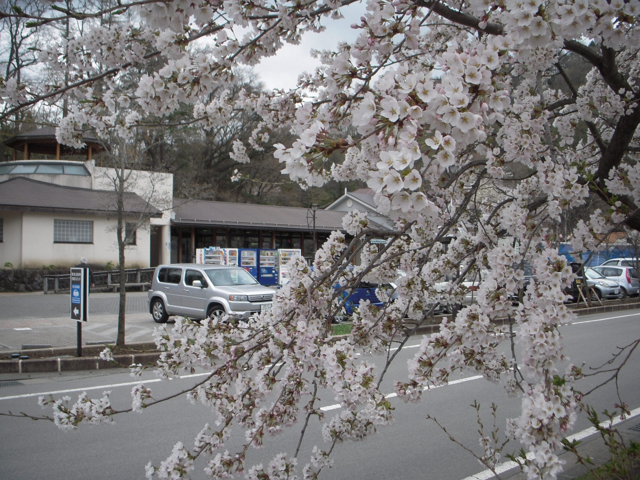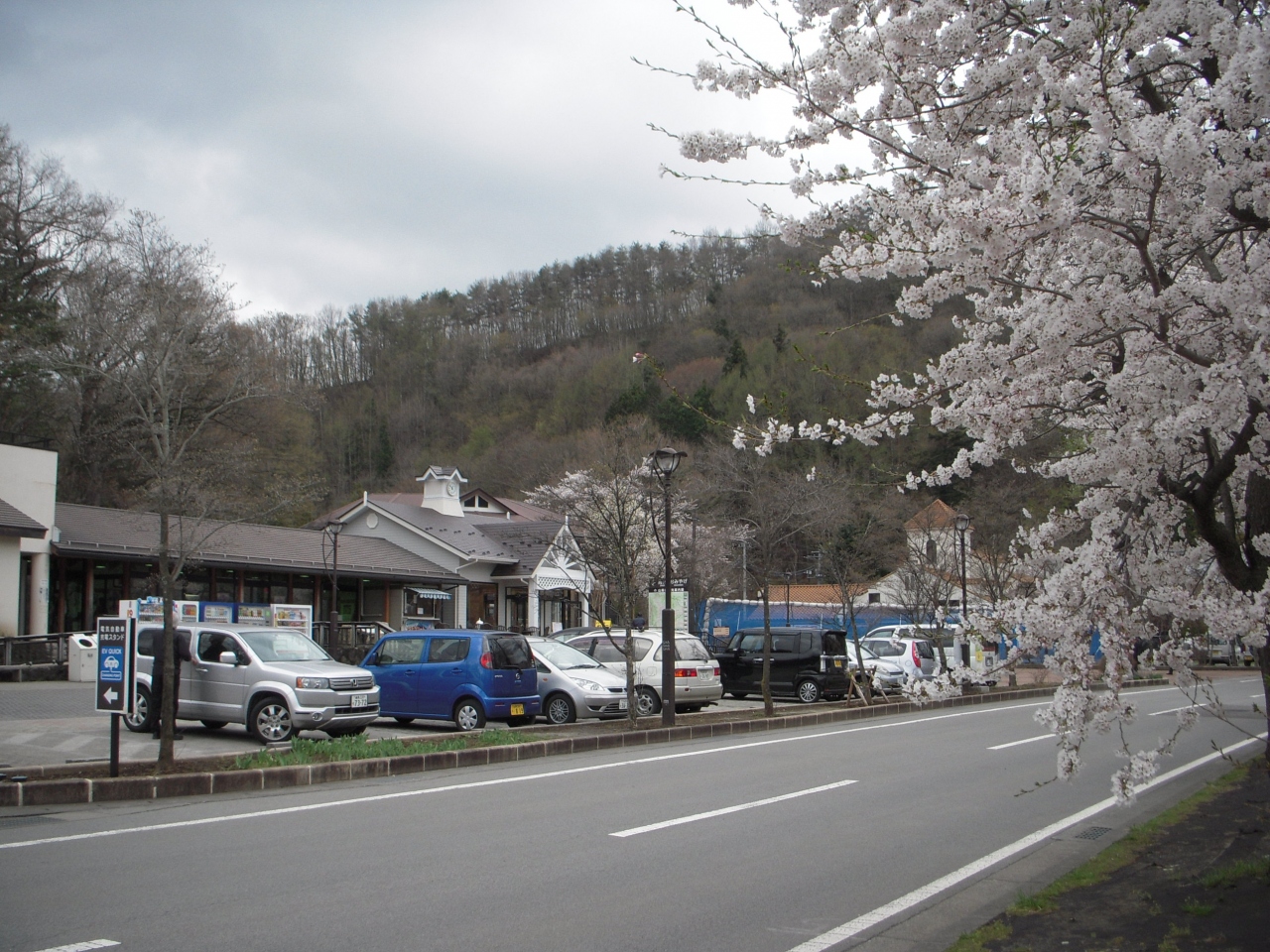 小海公園を挟んで河口湖に面しており、訪れたときは道路が満開の桜並木になっていて、見応えがありました。