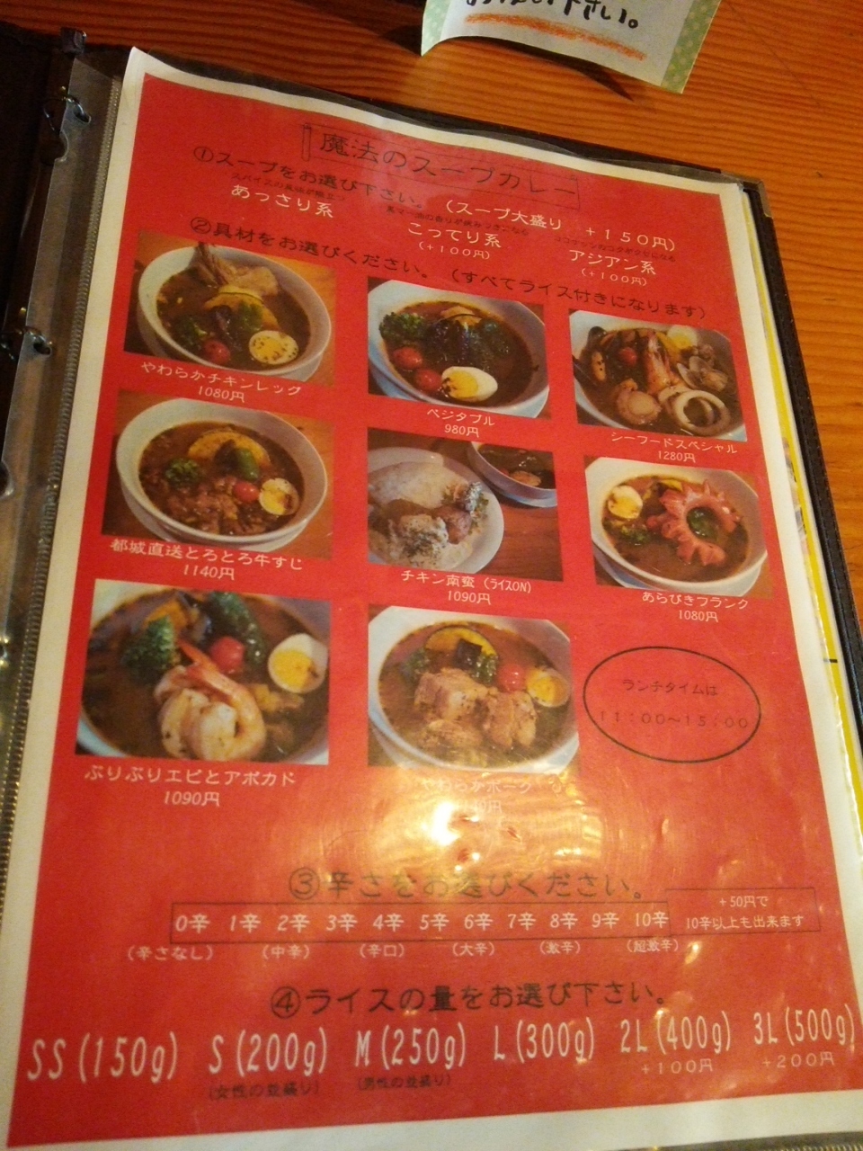 メニューは、スープカレーのほかに、通常のカレー、そしてキーマカレーもあります。