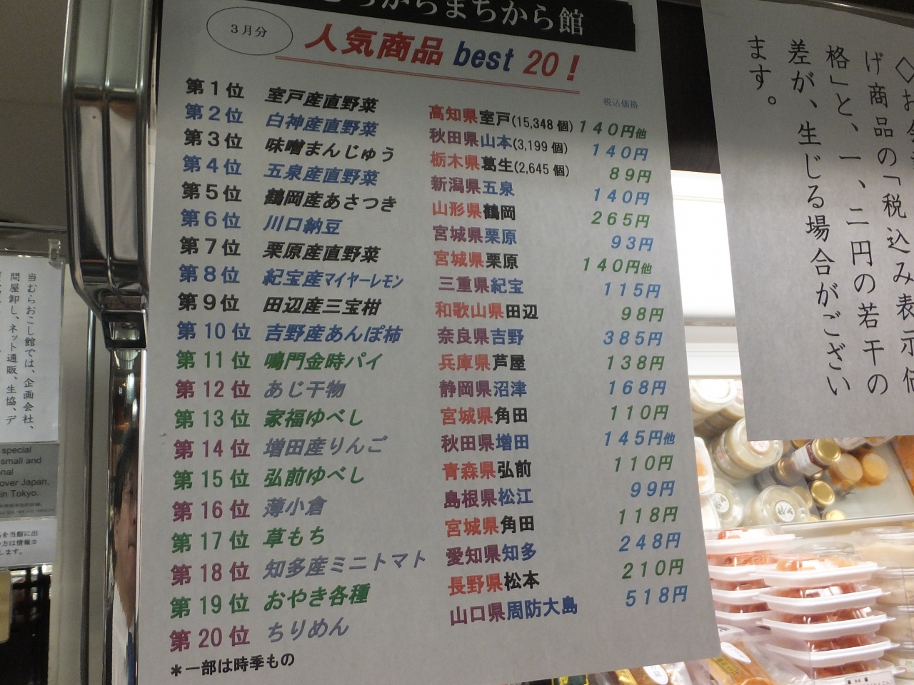 アンテナショップがたくさん入っている東京交通会館ですが、このむらからまちから館は日本のいろいろなところで売られている特産物が一堂に集められています。家庭で使う調味料ひとつにしても、日本全国にはこんなにたくさんの種類があったんだとちょっとびっくりです。たくさんの人で賑わっています。