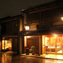 昼間もきれいで有名だが、夜になるとライトアップし、昔ながらの町並みが非常によくはえる。金沢駅からは非常に距離があるため、レンタサイクルして自転車でここまで来た。