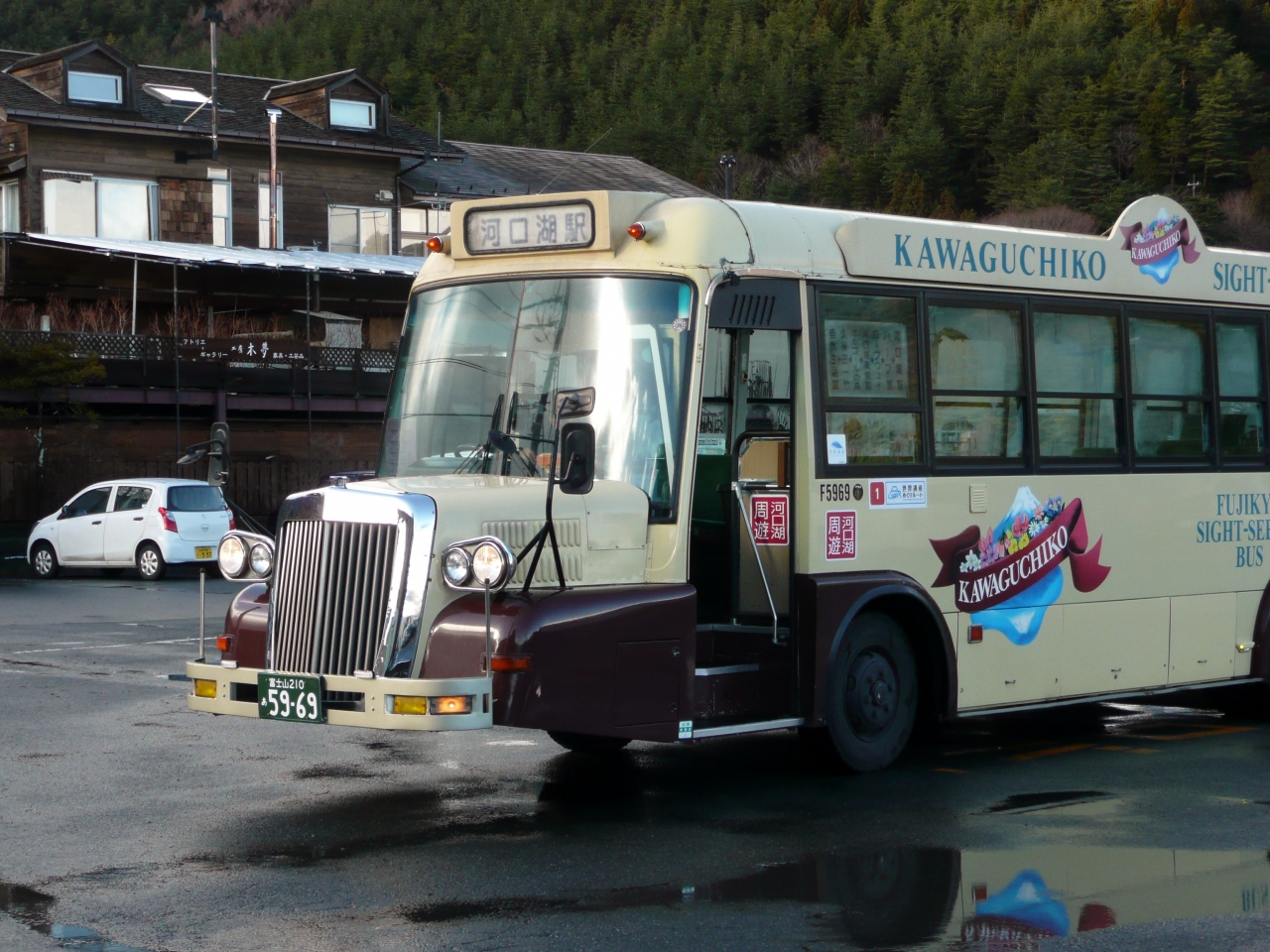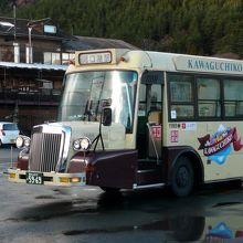 河口湖駅から、主要な観光地を回ってくれる周遊バス。2日間自由に乗り降りできる券もあり、バスで回る人には便利です。