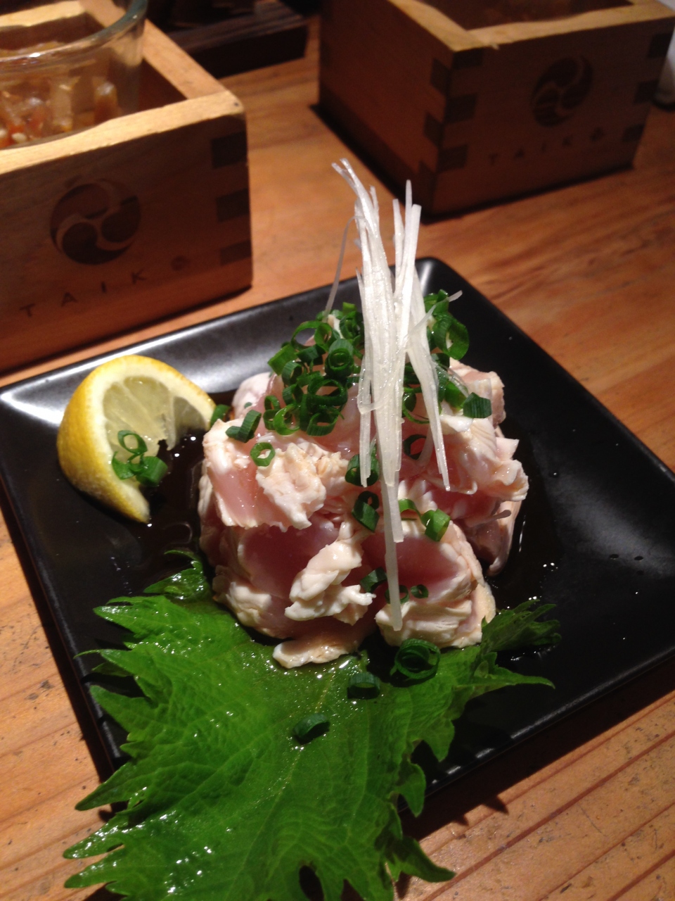 席はカウンターで店の雰囲気は良いです。とりあえず生ビール、店主お勧めの串焼き6本、いわい鶏たたき柚子ポン酢、両国の野菜畑をオーダー。生とお通し(きんぴら)がきて野菜畑、鶏たたきも良いタイミング出てきました。野菜はあまり見たことが無い野菜が10種類でアンチョビのソースでいただきました。とても美味しかったです。鶏たたきもさっぱりしていて量も程よくあっという間にいただきました。ただ一番楽しみの串物が出てこない・・・。カウンターだったのでタイミングを計られているのかなとも思いましたがそうでもない感じ。結構待って出てきたのが「さびささみ」一種類。6種類が出て来るまでかなりの時間を要しました。途中2種類の串焼きを追加注文しましたが時間がかかり過ぎでお腹がいっぱいになり、親子丼も頼めませんでした。焼きに何かこだわりがあるのか、何なのか?ただ、カウンターから見える焼き場がかなり小さいのが気になりました。味はとても良かっただけに悔やまれます。