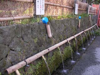 富士山本宮浅間大社の拝殿の東側に水屋神社があり、湧水を汲めるようになっています。煮沸して飲用するように書かれていますが、少しの飲んでみるとクセのない味です。隣には湧水の池があり、川になって流れだしています。