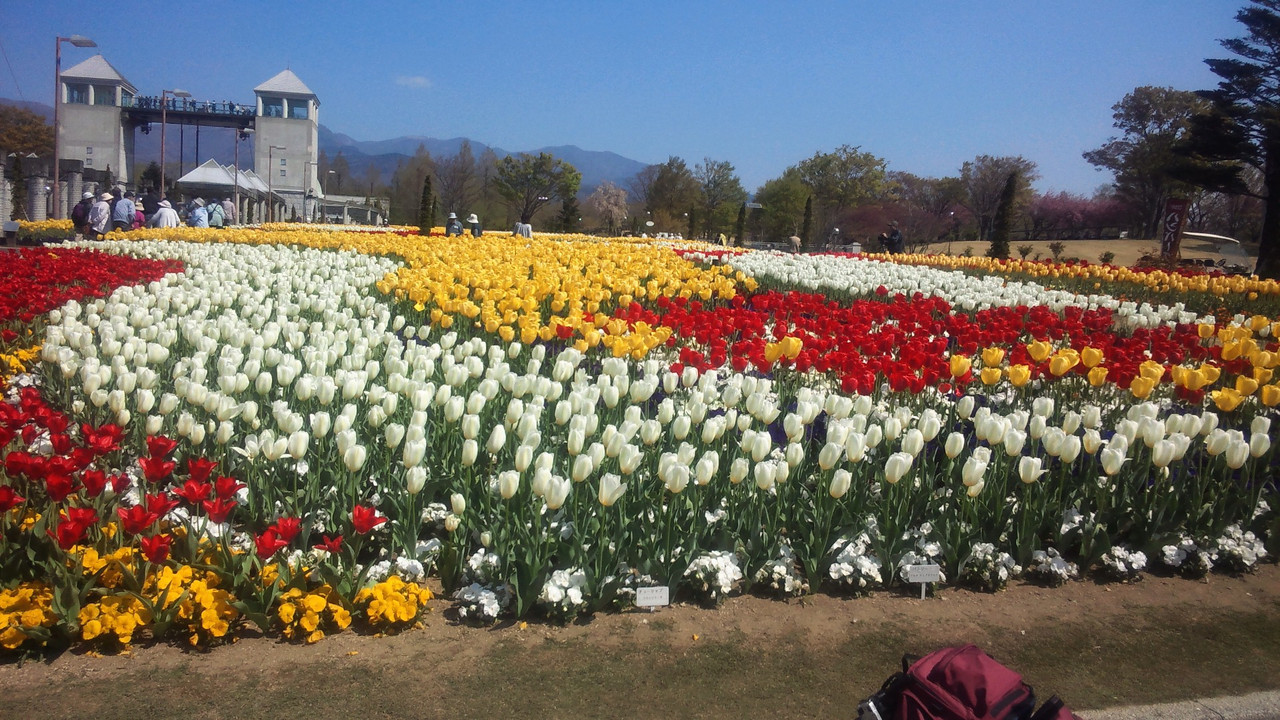 ちょうど、チューリップの時期でした。色々な種類が咲いていて、見事でした。定番の赤やピンク、八重咲きのも数種類ありました。