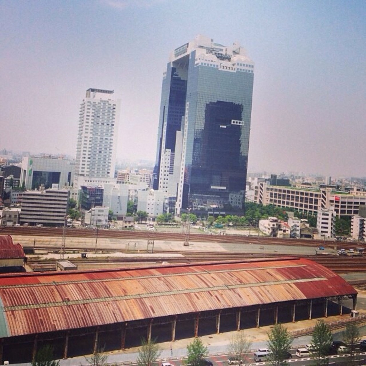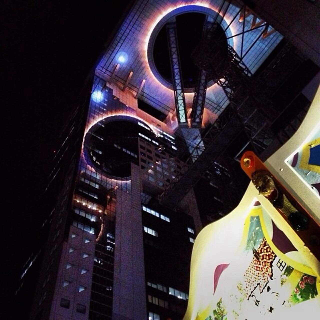 大阪駅から徒歩15分掛かりますが、屋上に上がり、外に出て360度眺めれます。