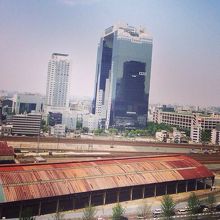 ビルの真下から見上げると、真ん中が丸く空いています。