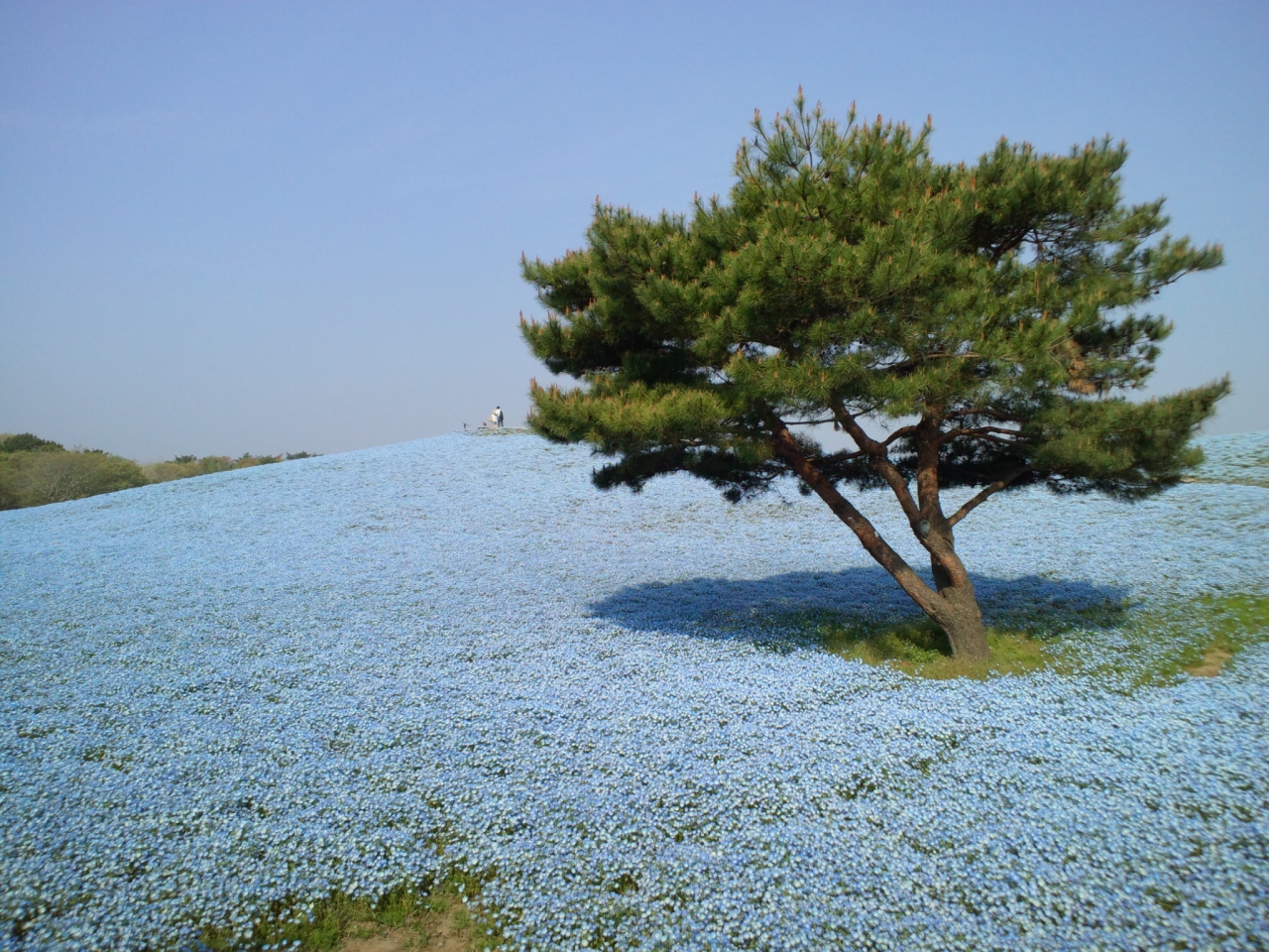 ネモフィラは思った以上にきれいでした。早めに行けばまだ丘に
