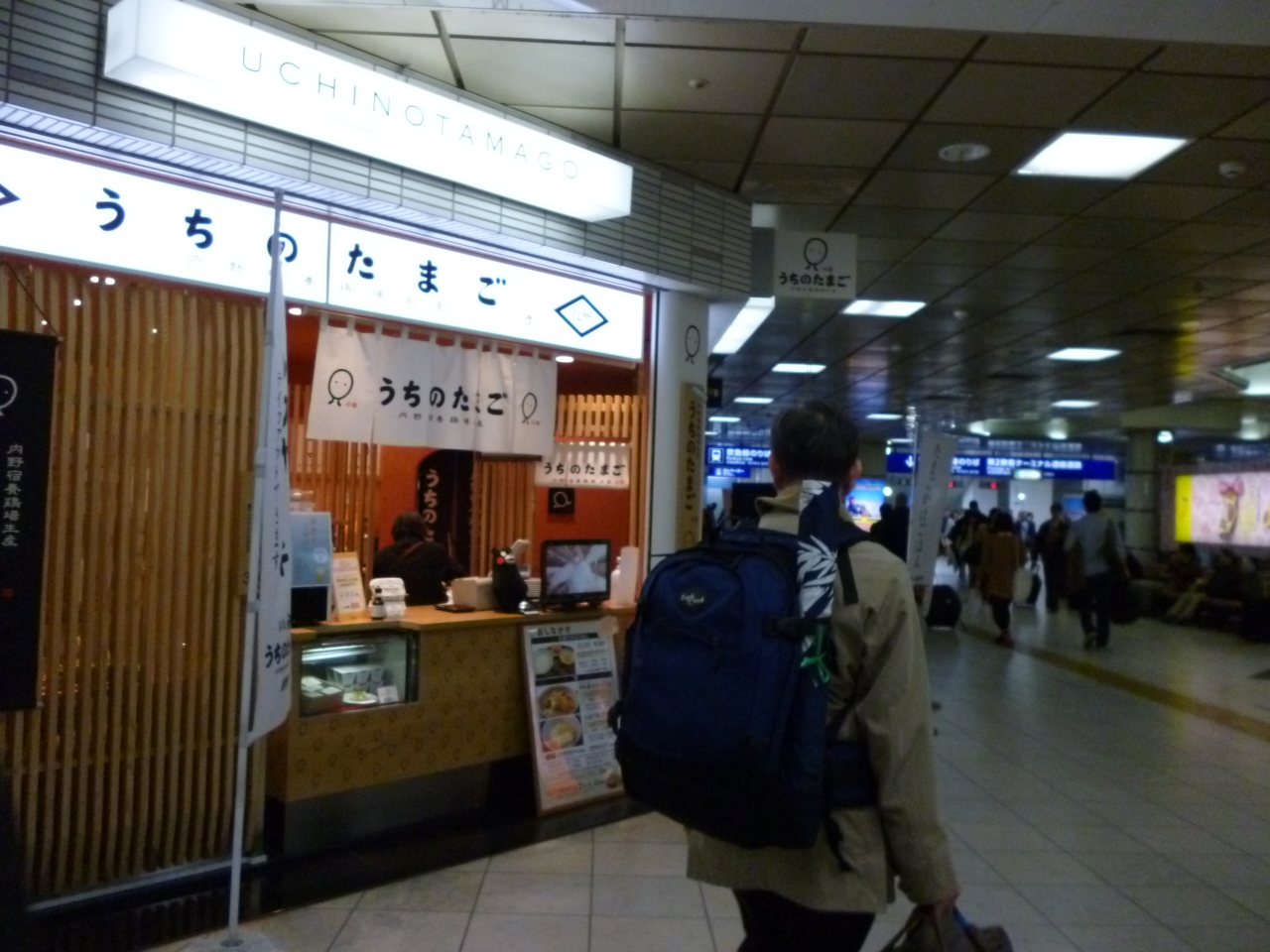 新千歳空港から友人と2人で羽田へ行きました。私はJAL。友人はANAだったので到着したら京浜急行乗り場で待ち合わす事のなっていました。ちょうど待ち合わせ場所のちかくに「たまごやさん」があったので玉子かけご飯を食べました。ワンコインですが、ワオンも使えます。