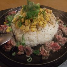 大人気のビックリチャーハンはチャーハンのまわりにお肉がのっています。