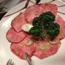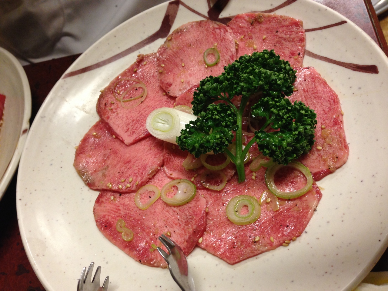 上タン、特上カルビ、上ミノ、ナムル、キムチ、玉子ワカメスープ、ドリンク3杯で、1万円いかない、という感じ。