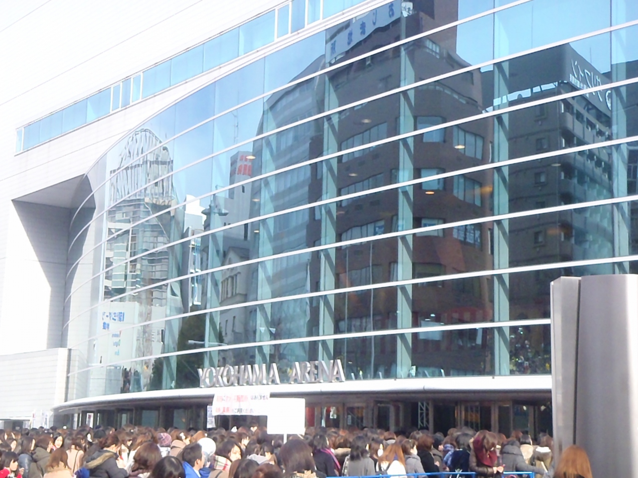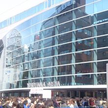 JR横浜線新横浜駅から駅前広場を出て駅前通りを右に500m行った所から左に入ると横浜アリーナが見えてます。