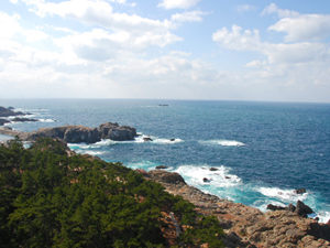 日御碕神社から徒歩10分ほどで日御碕灯台に到着、遊歩道を神社方向へ行くと経島があり、逆方向へ行くと出雲の松島があり、海沿いを散策できるのでとても気持ちよかったです。経島の方は一眼レフ&三脚を並べた人達が沢山いてシャッターチャンスを待っているようで隙間もない感じでした。