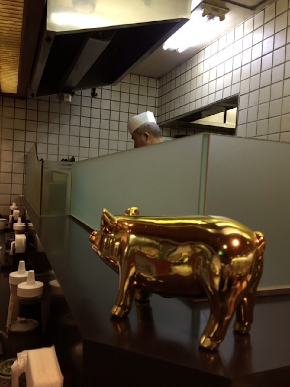 豚さんが好きな私はついつい、豚さんの置物があると入ってしまいます。福顔のご主人が寡黙に作っているものはとんかつだけでなくエビフライなど多数あり。また、ちょっと足りない場合はコロッケもプラス出来るのがありがたい。わたしは、エビフライ定食+コロッケで。ごはんキャベツはおかわり自由でした。